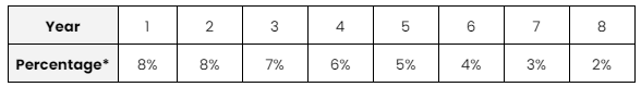 As with any annuity, Power Select Builder 8 comes with surrender charges that are applied in case you decide to withdraw a higher-than-penalty-free amount. To avoid extra fees, stick to the allowed amount or see how much you expect to pay: