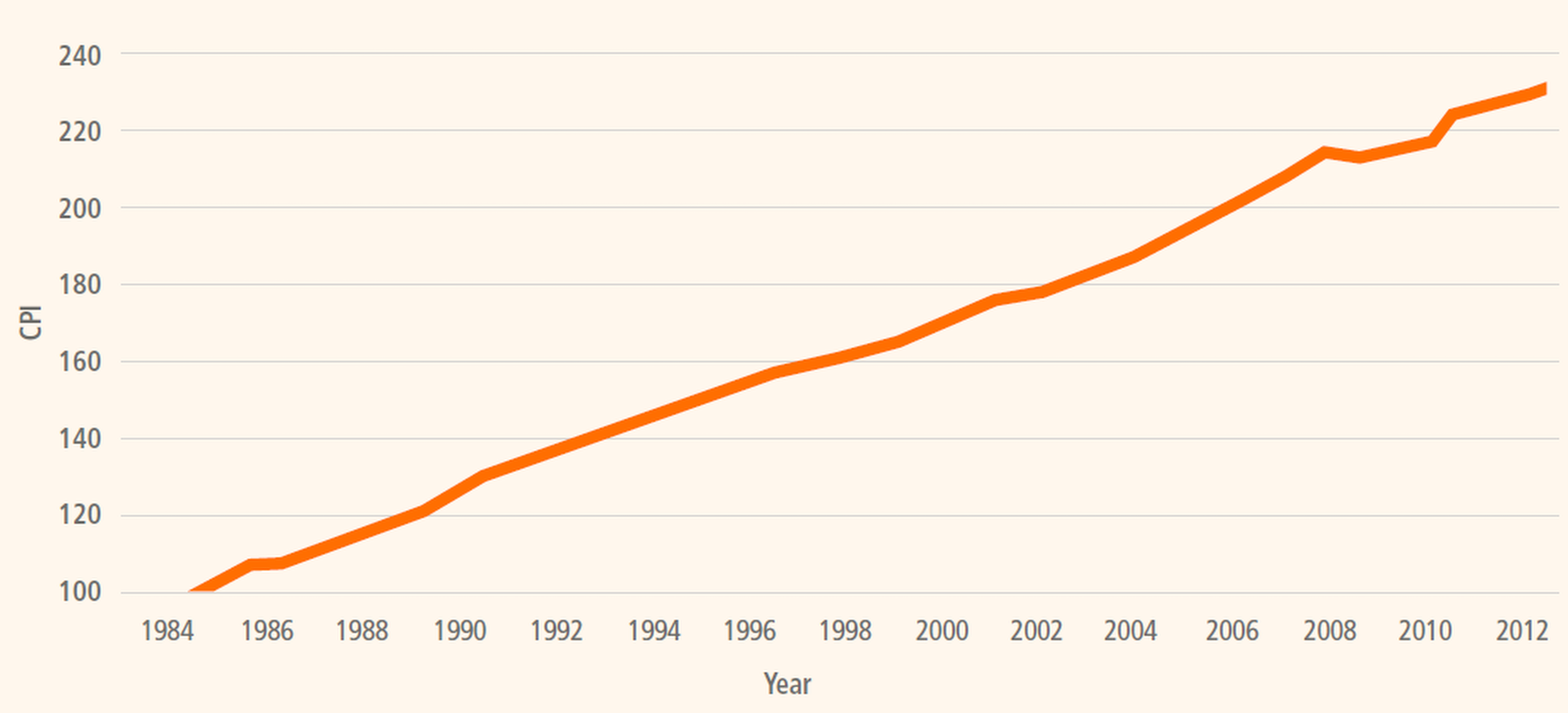 In the US, the Bureau of Labor Statistics (BLS) computes various consumer price indices nationally and for different geographical areas. Figure 2 shows a graph of the average cumulative CPI-U from 1970 to 2014.